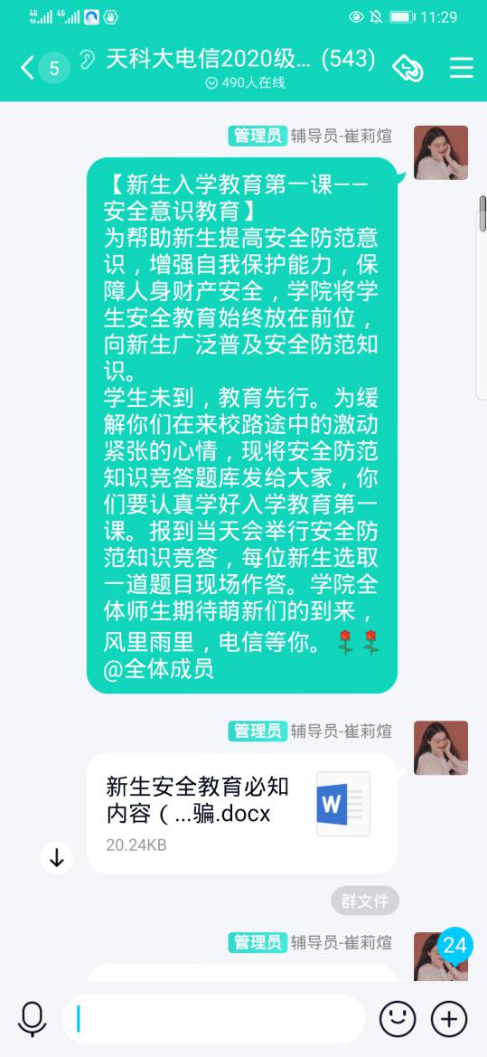 成人ai为了做好2020级新生安全教育,加强新生防范各类诈骗行为的能力,提升教育实效,营造和谐稳定的校园学习生活氛围。电信学院采取一列措施,全方位加强2020级新生安全教育。 上云端,织密安全教育网络 学院官微为同学们整理防骗指南、制作安全贴士,持续推送,给同学们提供全面的安全教育。为了便于解答新生的疑问,回应家长关切。新生入学前,学院通过建立QQ群、微信群,搭建起网络沟通平台,让同学在入校前就对学校的一切熟悉起来。同时,提醒家长关注学生的安全问题,多与学生联系,做好安全教育,家校共育,织密学生安全教育网络。