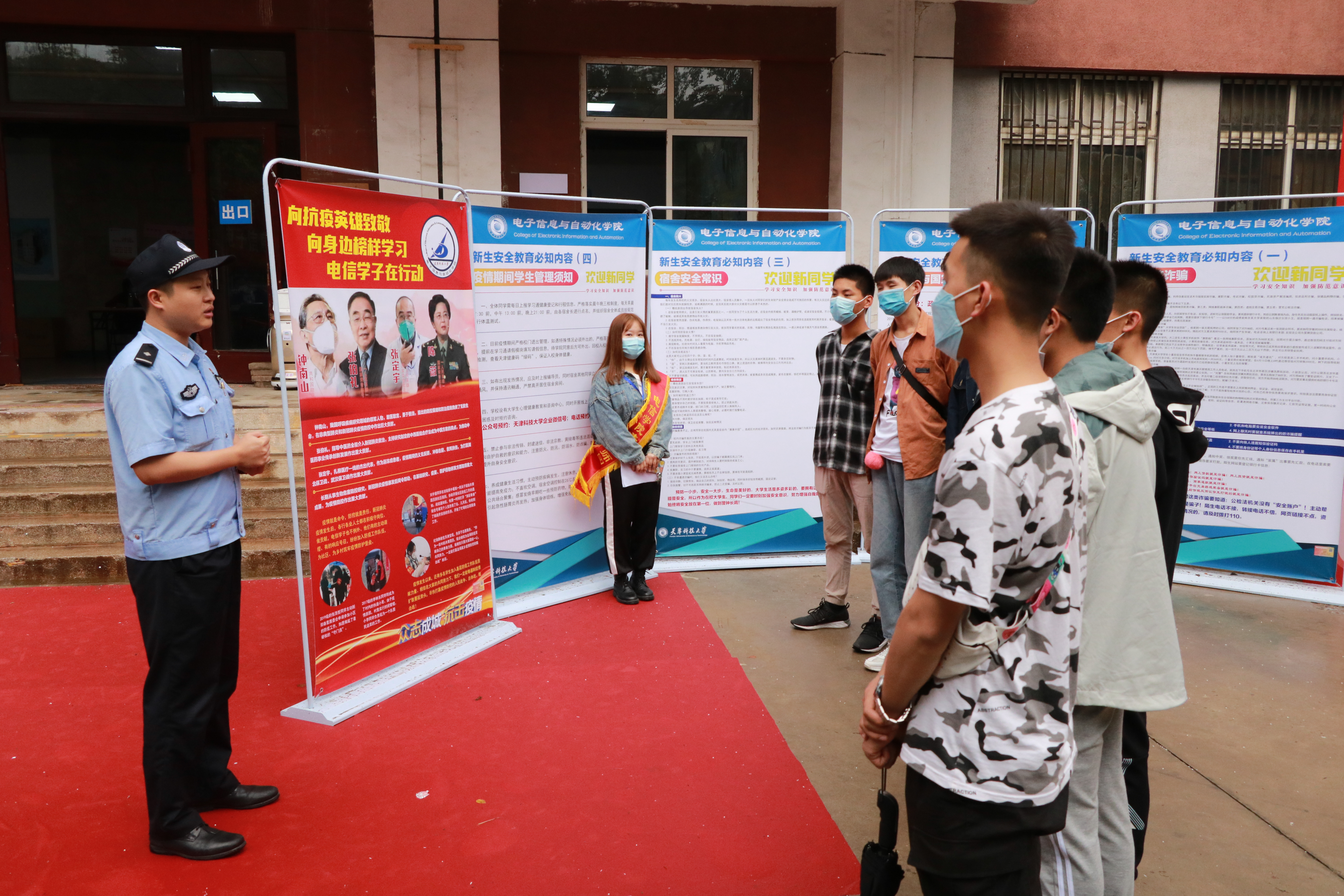 在现场,提升学生安全意识 报到现场,屏幕循环播放《成人ai 应急处置工作方案》,让学生掌握学校应急处置流程,做好疫情防控常态化的准备。学院邀请公安河西分局“河西力量”宣传队来院为2020级新生做入学安全教育。教育的部分环节设置在报到现场,以讲授+互动的模式呈现。新生报到现场,公安河西分局“河西力量”宣传员们以及电信学院学生干部通过发放宣传品、现场答疑、互动交流的方式,揭秘常见的电信诈骗、校园贷等犯罪手法,使学生摸清套路,远离陷阱。报道现场还设置了抽题区,通过问答互动,充分利用新生报到的等候时间,进一步强化新生的安全意识。